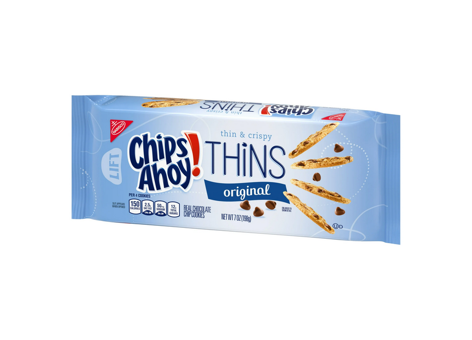 Biscoitos finos CHIPS AHOY! mais crocantes que o clássico, feitos com pedaços de chocolate de verdade.