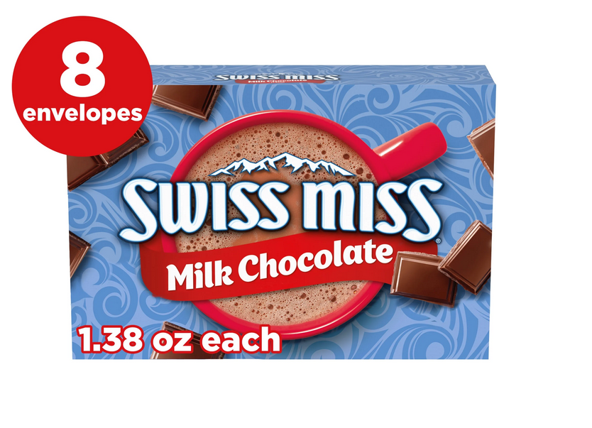 A mistura de cacau quente com sabor de chocolate ao leite suíço faz uma bebida quente e deliciosa de cacau quente que lhe trará conforto e calor diário sempre que você precisar. Esta mistura quente de bebida de cacau se transforma facilmente em um coco rico e cremoso que apresenta o sabor atemporal que sua família sempre conheceu e amada. A mistura de cacau quente e suíça é embalada em pacotes individuais, então cada caneca que você faz é igualmente deliciosa. Você não sentirá falta do seu velho chocolate quente. Este pó de cacau quente é feito com cacau de verdade e leite desnatado para fornecer aquele sabor reconfortante, rico e cremoso que você espera da falta suíça. Não é apenas uma mistura de cacau quente sem glúten, mas também é feita sem adoçantes artificiais, conservantes, sabores ou cores. É fácil preparar uma deliciosa caneca desse cacau quente. Esvazie a mistura de cacau com chocolate em uma caneca, adicione 8 onças de água quente (ou leite para um sabor mais rico) e mexa. Desfrute de uma caneca como parte da sua rotina matinal, em dias frios ou como um doce deleite noturno. Você pode usar essa mistura de cacau de maneiras diferentes. Tente fazer uma saborosa bebida de cacau gelado para esfriar você ou incorpore a mistura quente de cacau em suas receitas para brownies, biscoitos, bolos e muito mais. Tudo o que você estiver se aquecendo, saiba que a Swiss Miss dará tudo o que você precisa na palma das suas mãos.